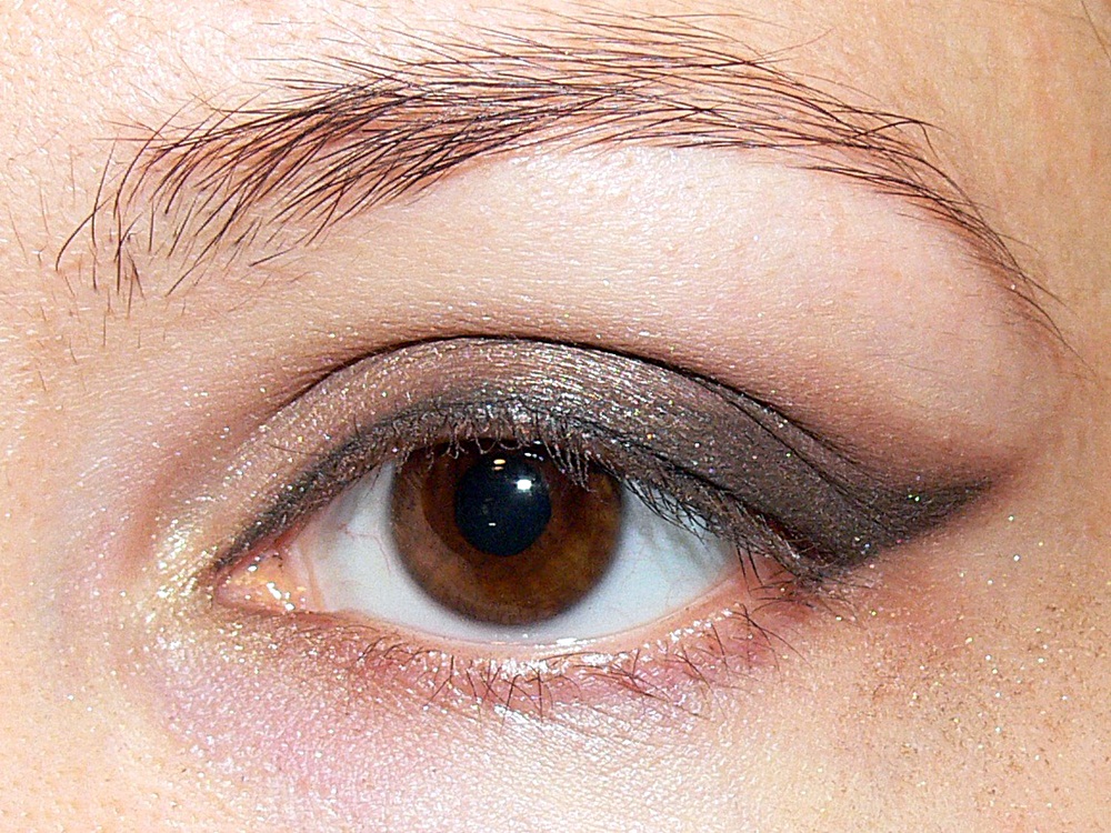 Krok 3: Przecieram kreskę brązowym matowym cieniem Paper bag z paletki Darks.