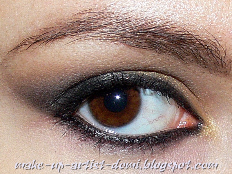 In Morocco and other arabic countries for eye make-up women use KOHL. It is a mixture of herbals which gives not only intense black colour but also has other good properties. The ingredients reduce eye capillaries which make the iris more expressive. While applying kohl at water line you may feel a cooling effect which lasts only a little while. I ever used arabic kohl and I must say that it is quite longlasting at water line. In this make-up I used just pencils, tough.