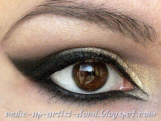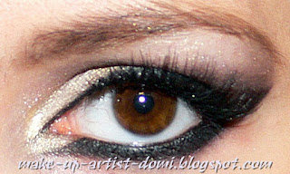 Krok 7: Nakładam delikatnie na wewnętrzną część powieki Duraline Inglota i na to ostrożnie złoty Inglot Body Sparkles. Zależało mi na trwałości i żeby brokat został na powiece jak najdłużej nienaruszony.