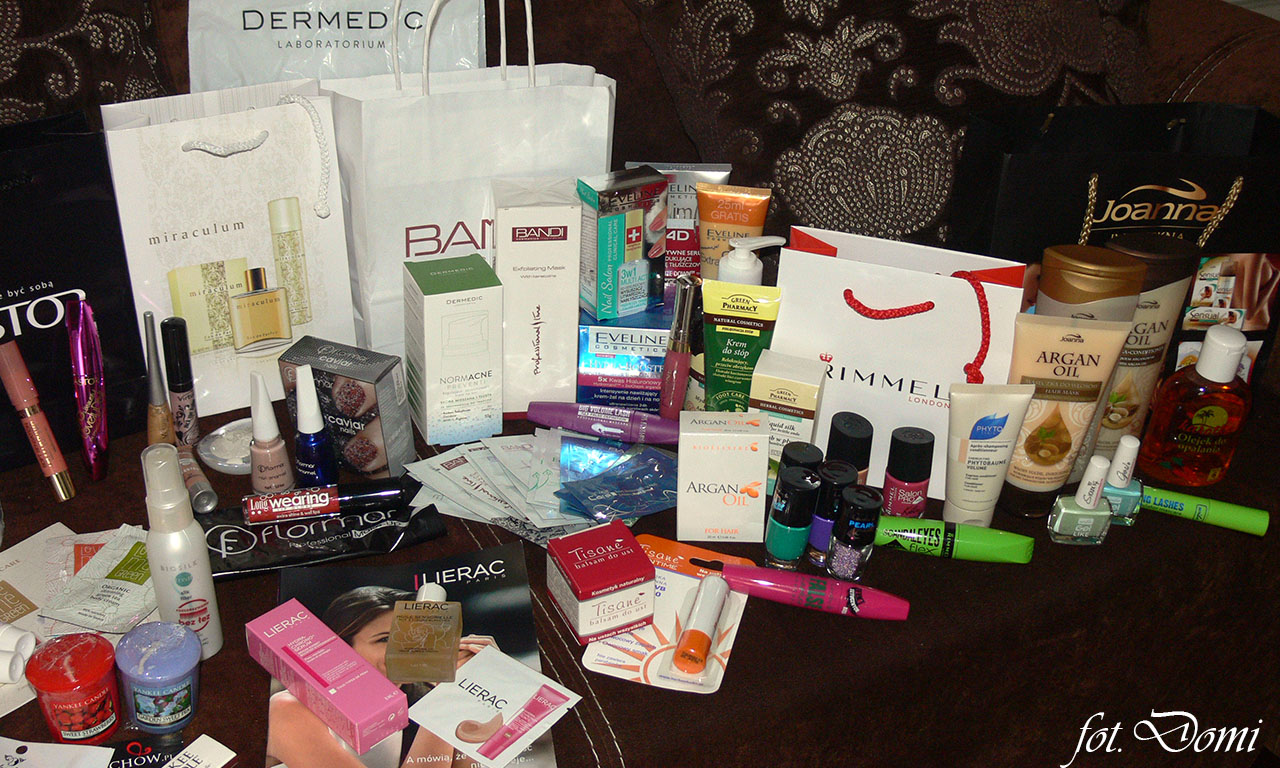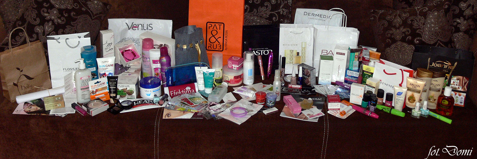 A to "drobne" upominki zebrane razem. Tkwię trochę w szoku i jeszcze nie wiem za co się łapać najpierw. Tonę w kosmetykach! Jestem w raju...