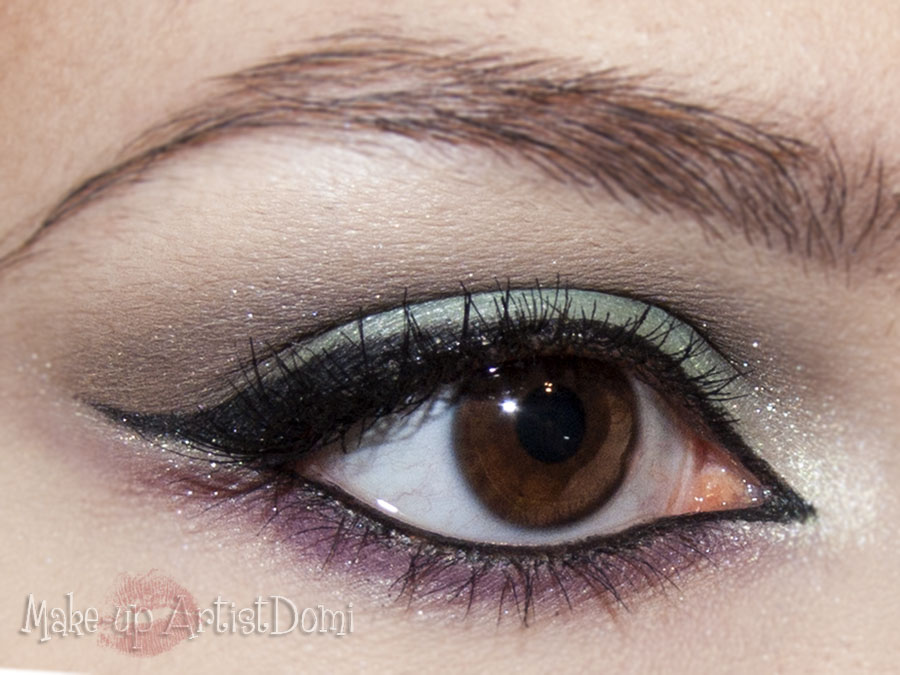 Oczy: cień do brwi Inglot 569, baza pod cienie ArtDeco, cienie z paletki Sleek Candy (mint cream, parma violet), cienie z paletki Sleek Ultra Mattes Darks (paper bag), pigment Kobo Pure Pearl Pigment 504 mint cream, żelowy eyeliner Maybelline, maskara MaxFactor 2000Calorie Dramatic Look, czarna kredka Oriflame Beauty Smooth Definer, sztuczne rzęsy Ardell połówki 318, klej DUO.