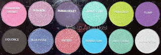 Kolor, który mi się od razu rzucił w oczy to blue fizzle - śliczny taki fioletowy granat. Potem moją uwagę przykuły bon bon i parma violet. Jakoś za odcieniami zieleni nie przepadam, ale spodobał mi się apple sour. Błękit bubble gum przypomina mi mój nowy nabytek z Inglota, więc mnie nie rzucił jakoś na kolana. Żółto-zielony pear drop jest nie w moim guście i na razie nie mam na niego pomysłu. Na razie pomyślę co zrobić z miętką mint cream, bo w sumie chodził za mną jakiś taki odcień od jakiegoś czasu.