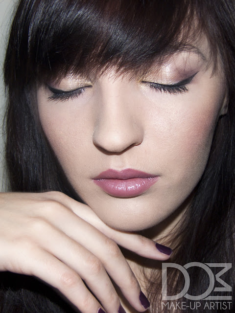 Oczy: kredka do brwi Catrice 020 Date with Ash-ton, baza pod cienie Inglot, cienie z palety Sleek Vintage Romance, Maybelline Color Tatto 24K Gold, maskara Paese Adore 3D lash mascara, żelowy eyeliner Maybelline black, cielista kredka Oriflame Beauty Kohl Pencil nude.