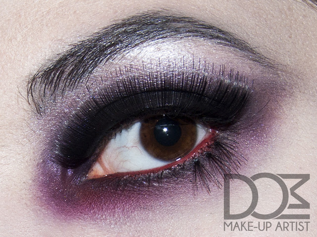 Oko pomalowałam w fioletach, czerwieni i czerni. Obowiązkowe dramatyczne sztuczne rzęsy, żeby były widoczne.