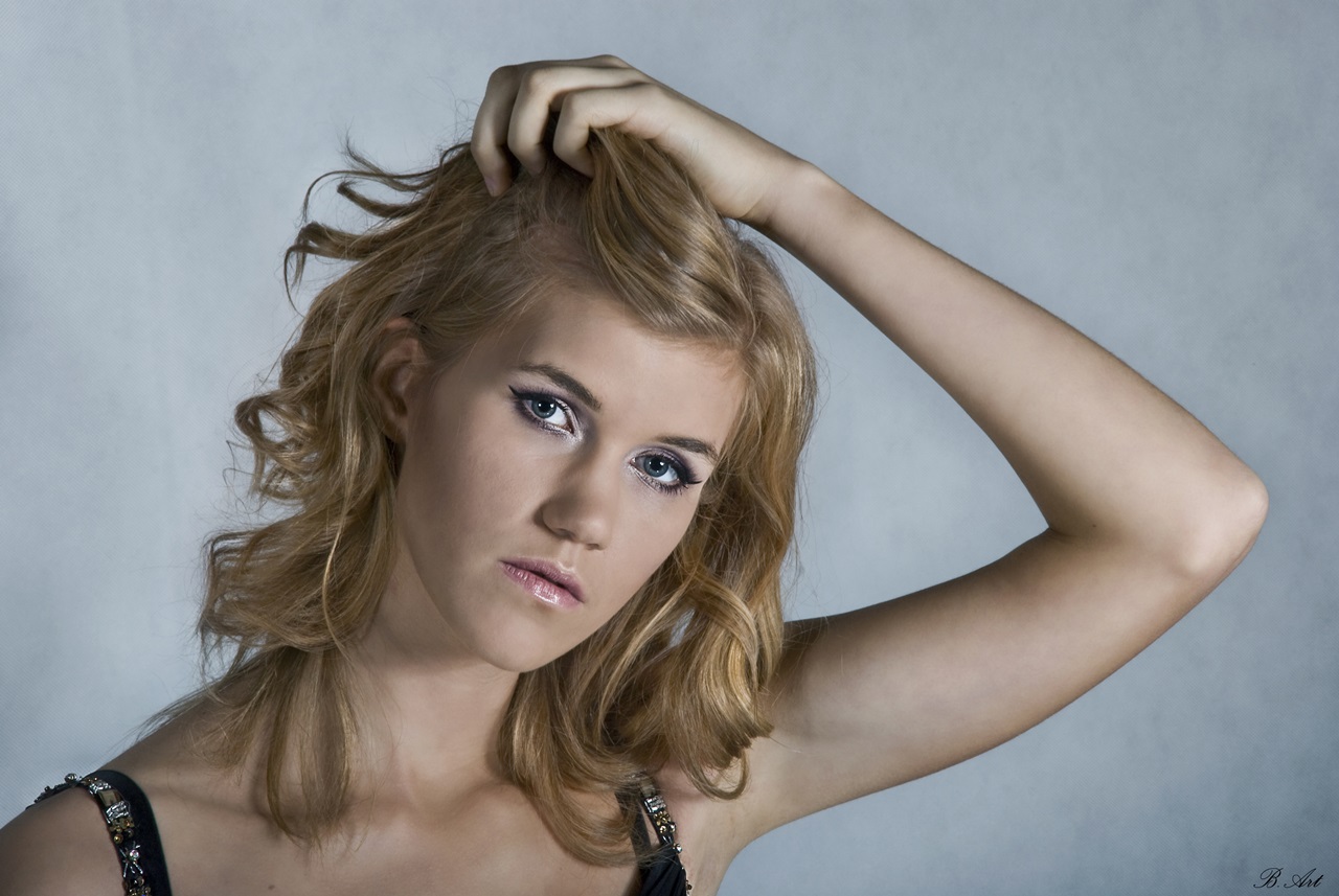 Śliczny makijaż Dominiko. Bardzo pasuje do blondynek. W ogóle to modelka ma równiez piękny kolor tęczówki, masz rację makijaż dodatkowo podkreśla jej kolor. :)