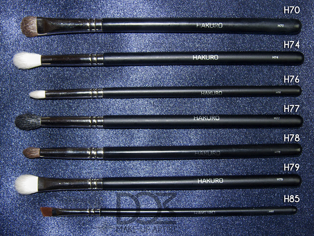 Kolejne pędzelki Hakuro, ale tym razem do cieni. Również mają drewnianą, pomalowaną na czarno rączkę i są solidnie wykonane. H70, H78 i H85 nie zgubiły mi ani jednego włoska. Jedynie wytarły mi się napisy na rączce, ale nie przeszkadza mi to zbytnio. Natomiast H74, H76, H77 i H79 to moje nowe nabytki z dnia darmowej dostawy i jeszcze nie mam konkretnej opinii na ich temat.