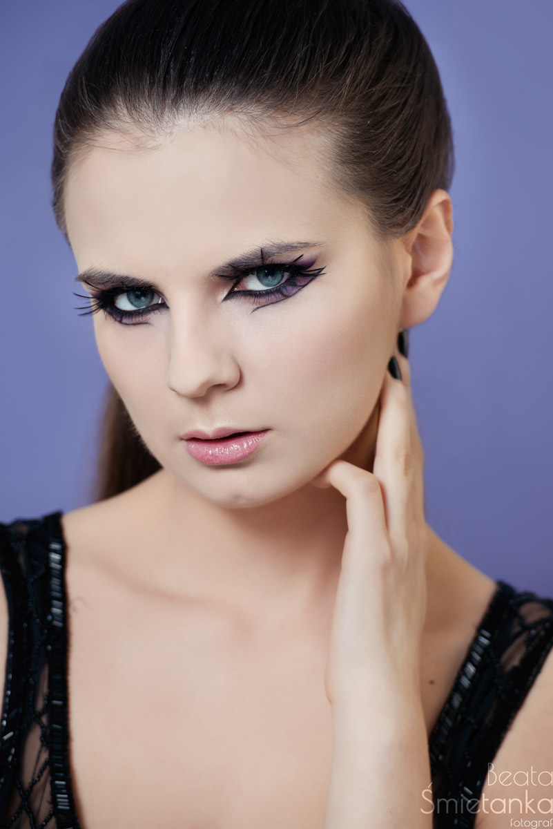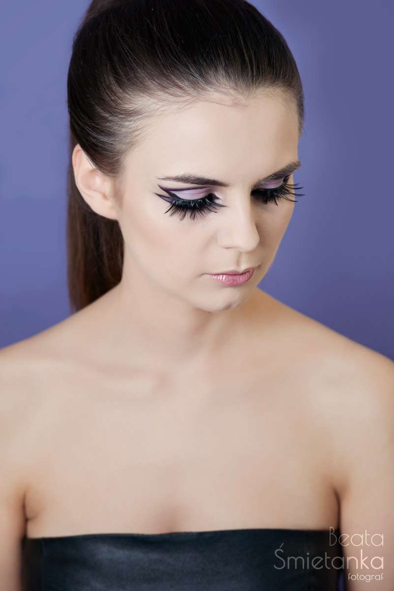 Dzisiaj mam dla Was już ostatni z moich ostatkowych twórczych makijaży z zastosowaniem piórek. Tym razem znowu drapieżnie, ale taki styl jest wręcz stworzony dla modelki Zuzi. Robiłam trzy makijaże na jednej sesji. To był dla mnie wyczyn. Ta propozycja jest trochę inna od pozostałych dwóch, ale nadal starałam się w jakiś sposób nawiązać poprzez zastosowanie piórek i fioletu.