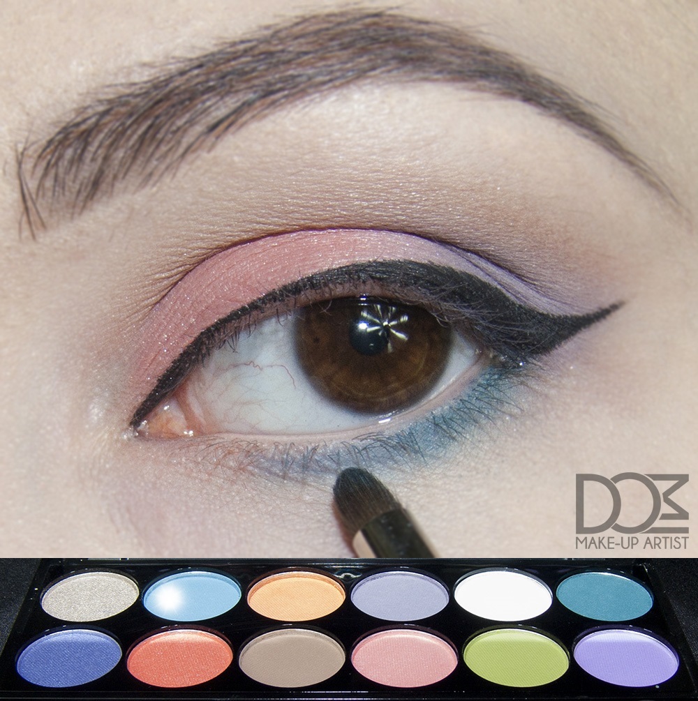 Krok 6: Cieniem Blue Marlin podkreśliłam zewnętrzną część dolnej powieki (w palecie wygląda na zielony, ale na powiece faktycznie stał się niebieskawo-turkusowy).