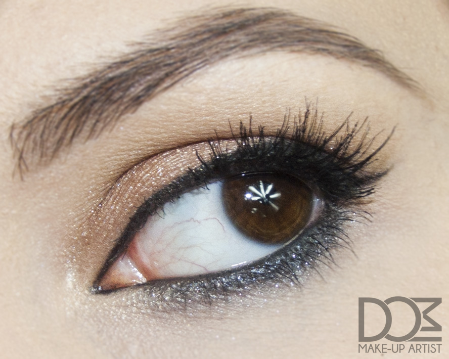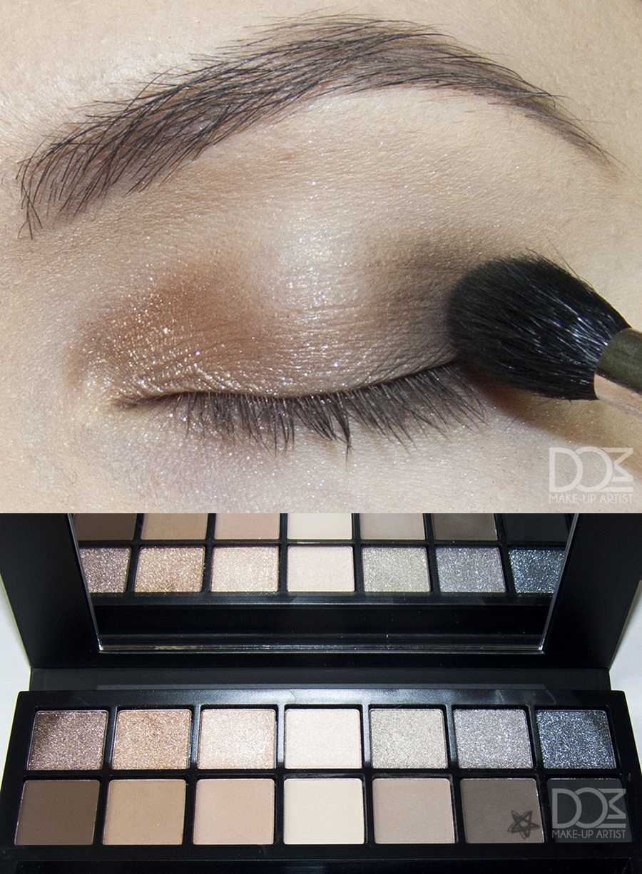 Krok 4: Średnim połyskującym cieniem pokryłam pozostałą część górnej powieki. Zatarłam wszelkie granice między cieniami.