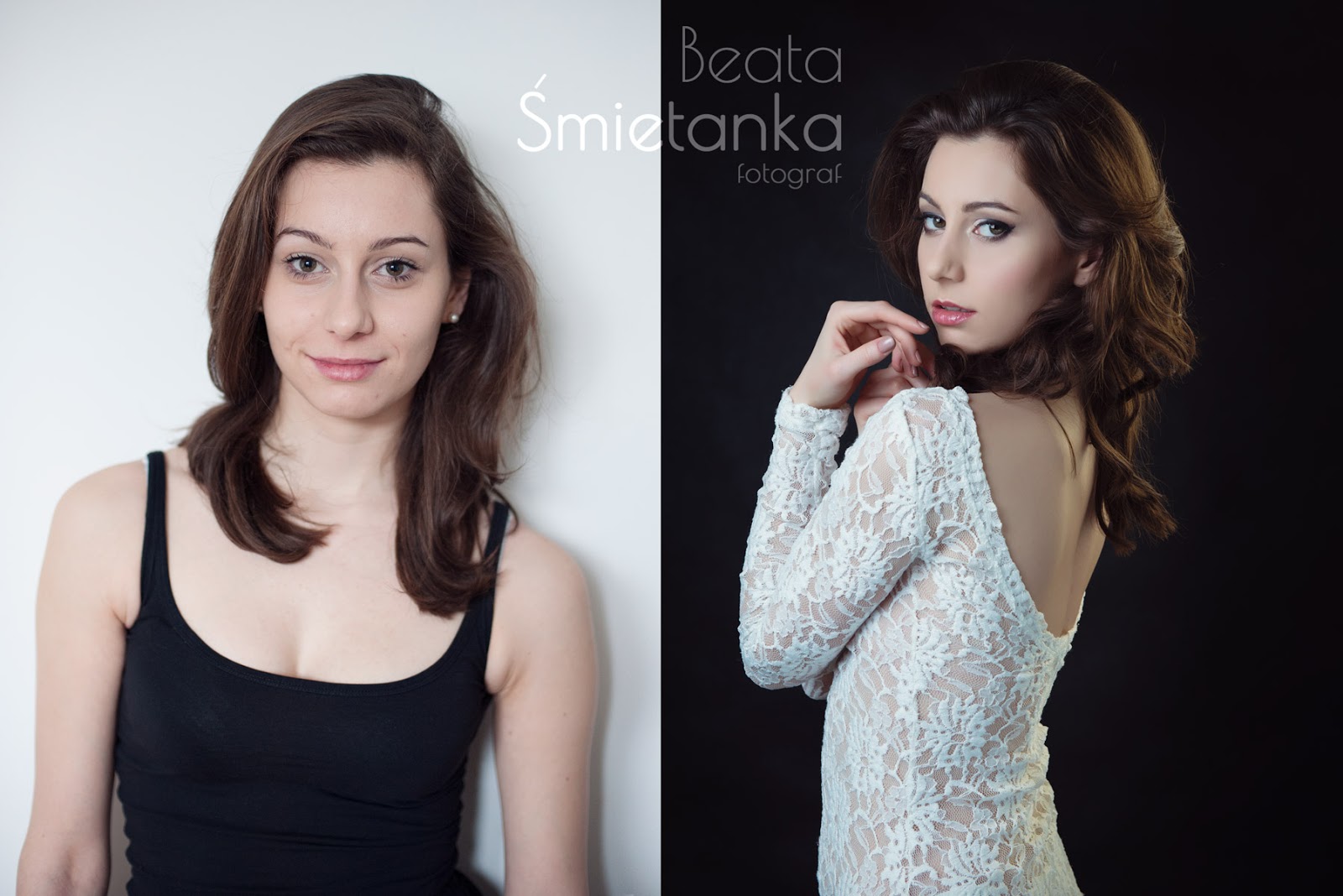 Ostatnio rozpieszczam Was tutorialami, ale żeby nie było zbyt monotonnie (o nie znowu tutorial... ;) ) mam tym razem dla Was efekty Sesji Metamorfoza z Julią. Moja propozycja makijażu to klasycznie podkreślone oko w brązach i delikatne usta. Główny akcent pada na oczy i to one przyciągają całą uwagę. Ach, to hipnotyzujące rozmarzone spojrzenie...