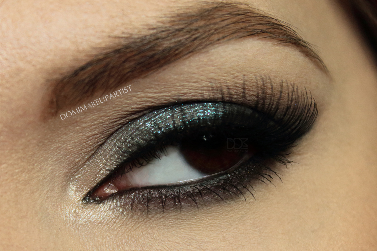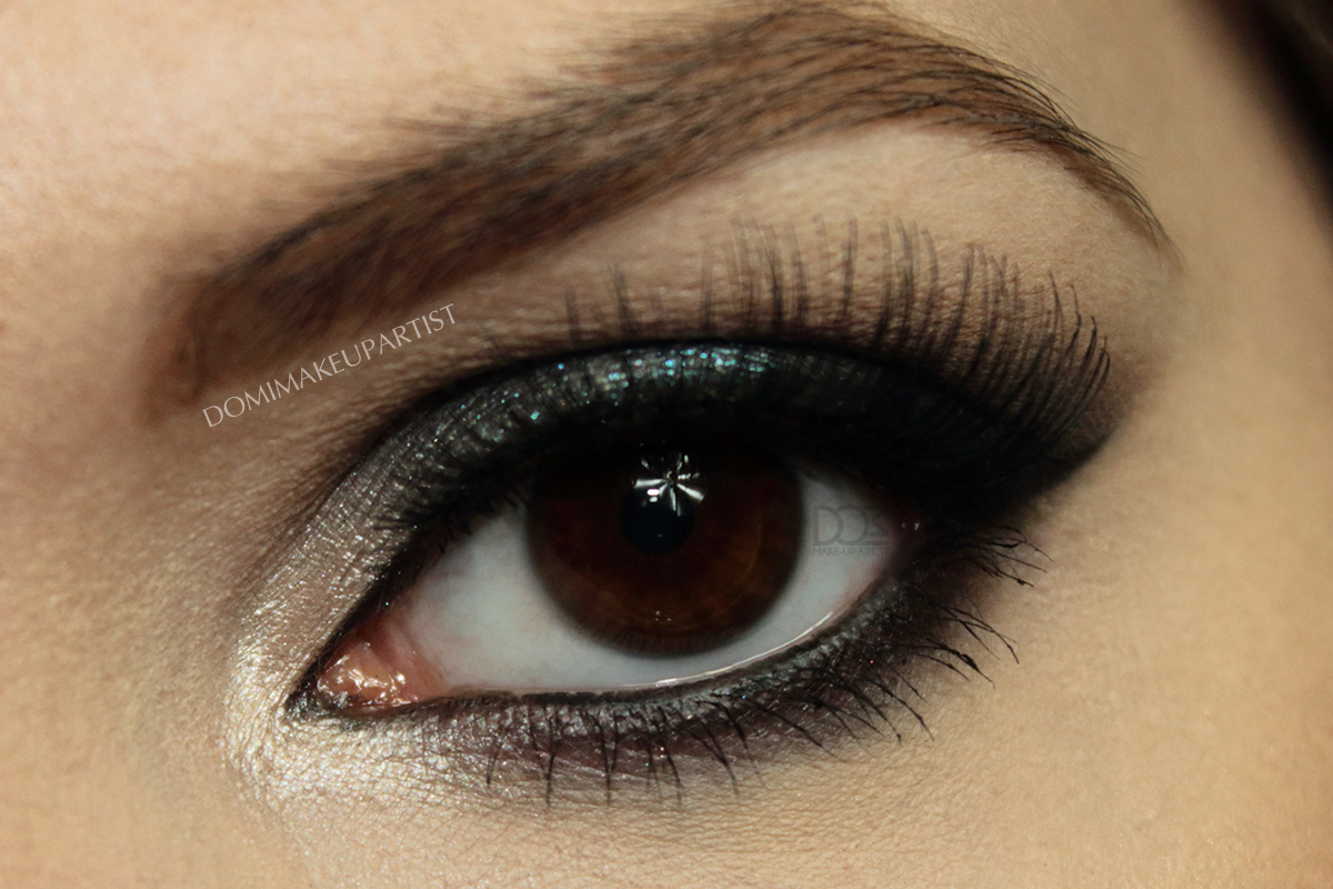 Oczy: MUFE Aqua Brow 25, baza pod cienie Urban Decay Primer Potion Eden, cienie z palety Smashbox On the Rocks, cienie z palety Urban Decay Naked2, bezbarwny żel do brokatu Kryolan, niebieski drobny brokat Inglot Body Sparkles 51, maskara MaxFactor 2000Calorie, rzęsy Ardell Demi Wispies